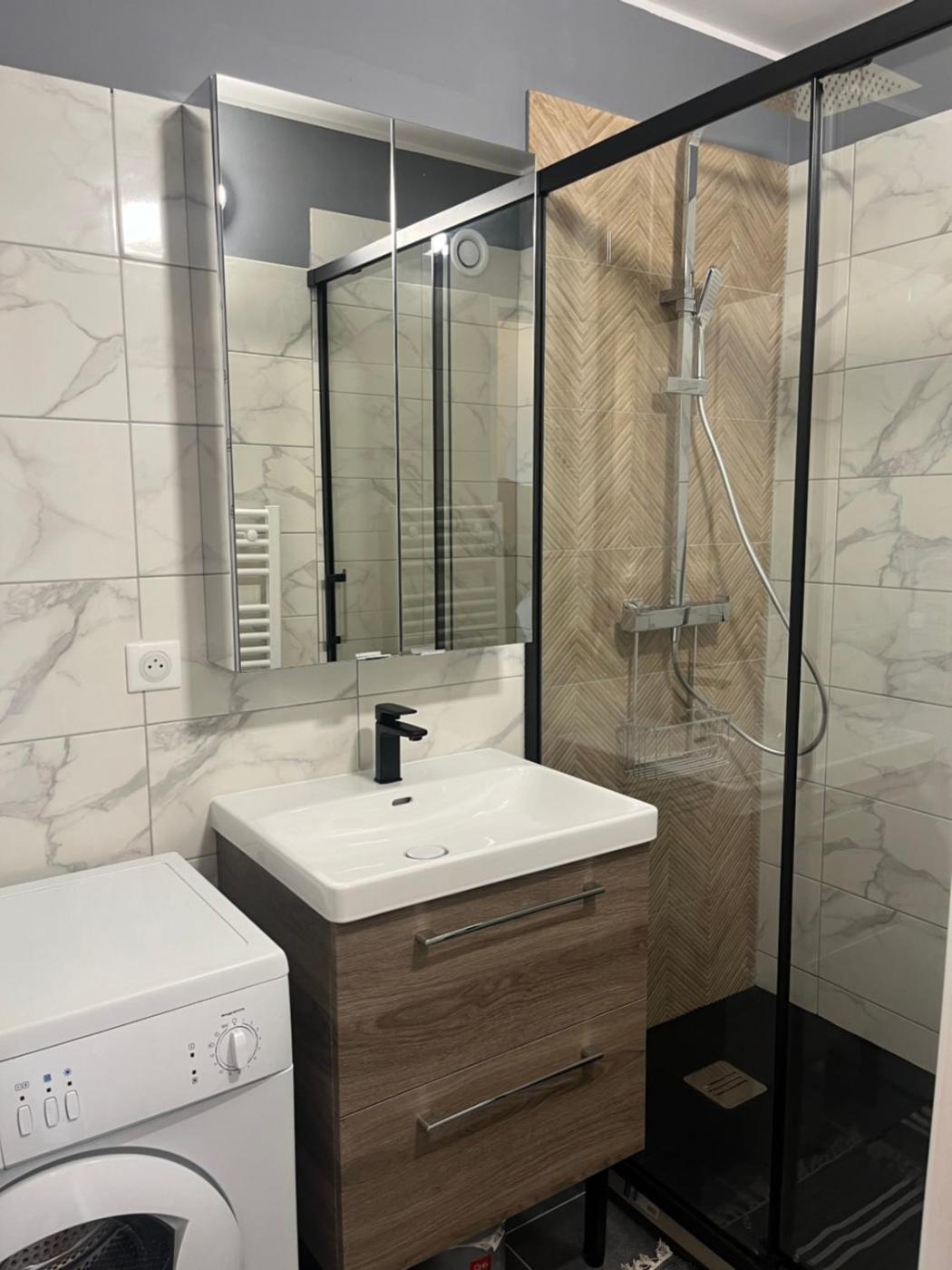Appartement 1 Chambre. In the well-equipped kitchen, guests will find a stovetop, a refrigerator, kitchenware and a microwave. The apartment offers a washing machine, soundproof walls, a tea and coffee maker, a seating area, as well as a flat-screen TV. The unit has 2 beds.